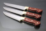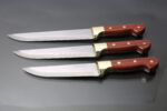 Each knife features a beautiful wood and brass handle, offering a firm, comfortable grip and an elegant appearance that complements any kitchen decor. Whether you’re a professional chef or a passionate home cook, this versatile set is designed to meet all your cutting, slicing, and dicing needs with precision.