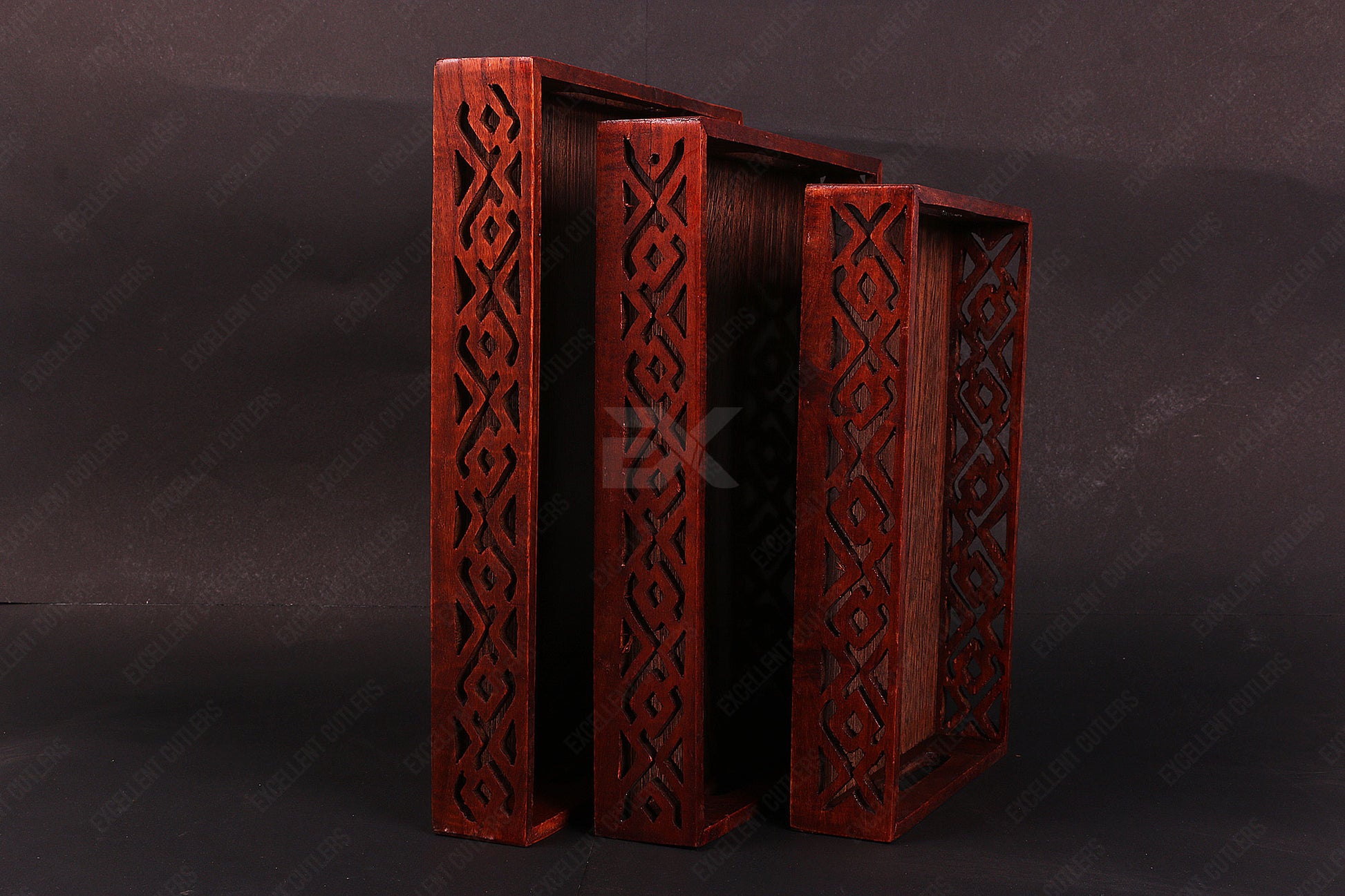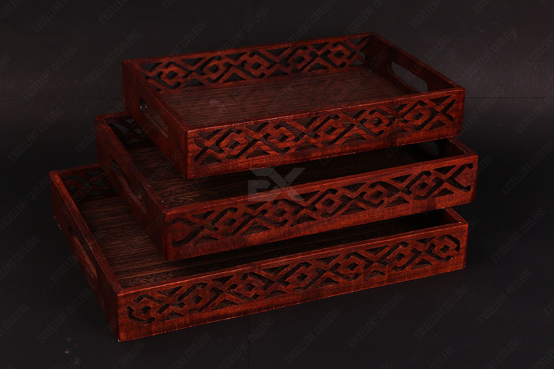 Wooden Screen Tray Set Tray Set Features Crafted Wooden Finish Set Of 3 Pices Features: Set of 3 Trays